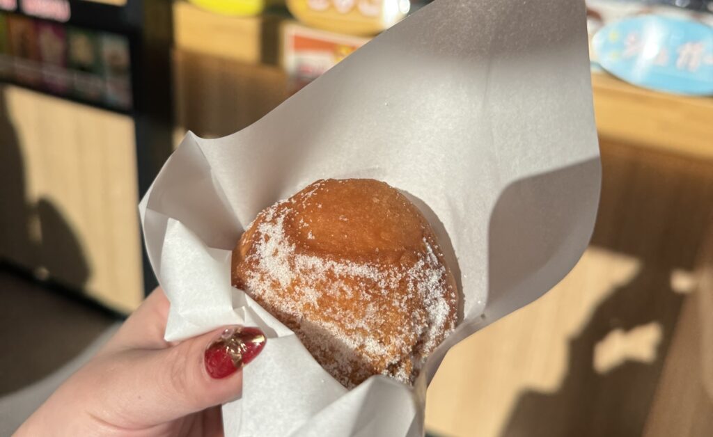 最後に、建物の外で売っていたこんにゃく豆乳ドーナツ(200円)もゲット。