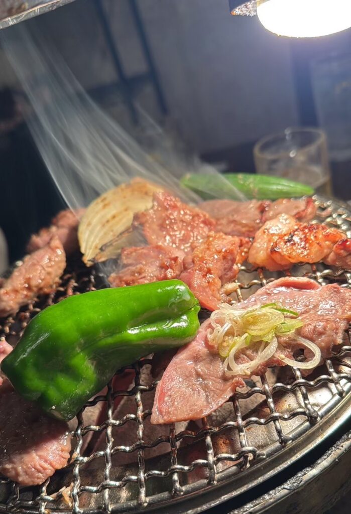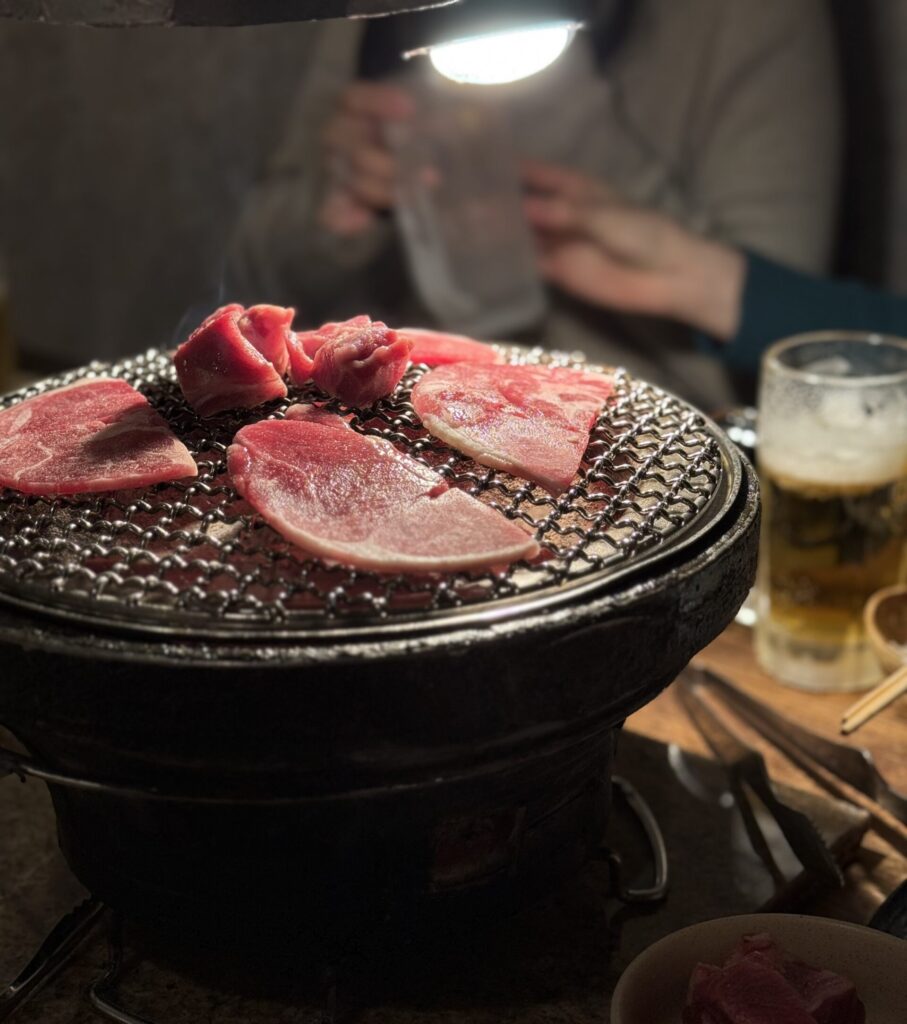ジンギスカン鍋ではなく、炭火焼肉スタイル!