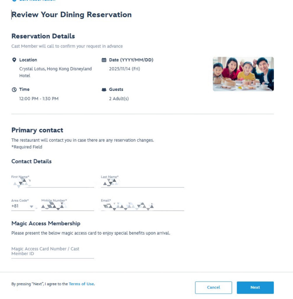 レストラン自体は空いていたら予約なしでも入れるようですが、キャラクター点心は2日前までの予約が必要です。