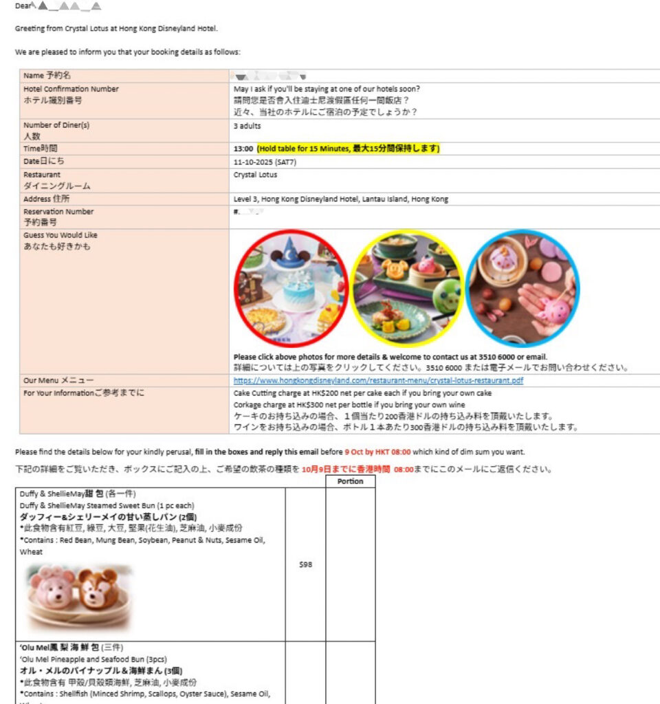 点心の予約は、表をコピペして注文数を「Portion」欄に書いて返信すれば◎