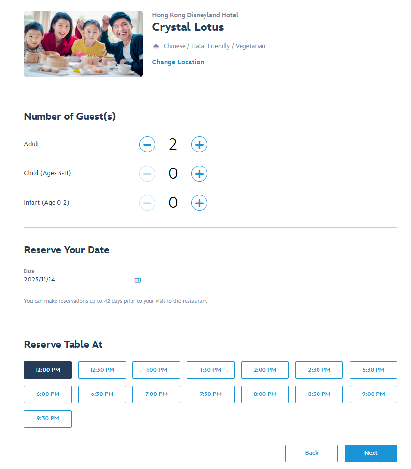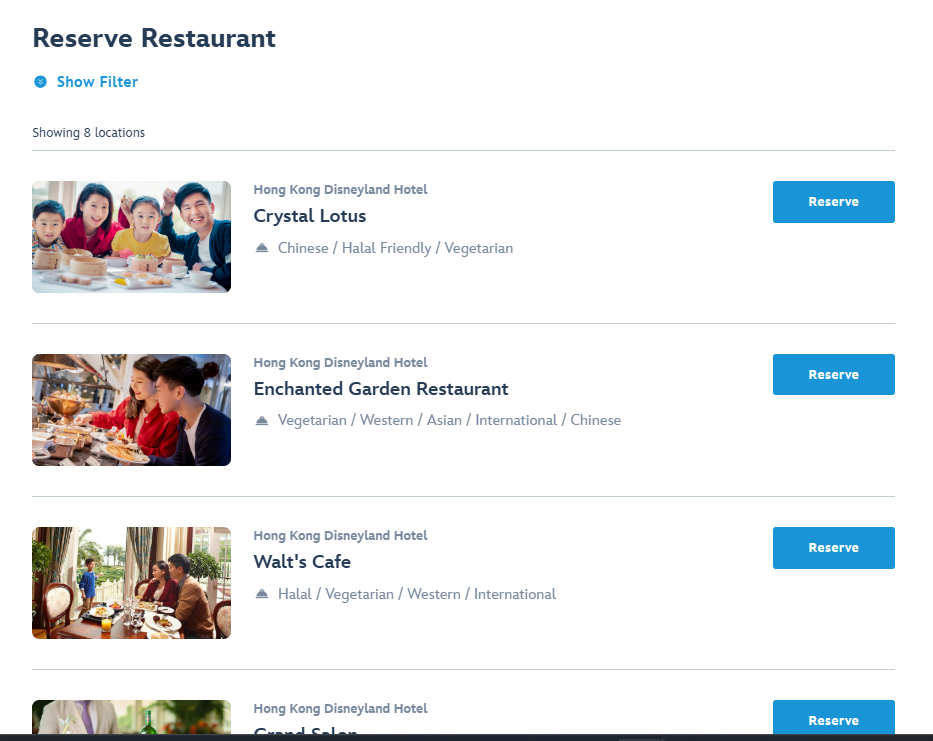 続いて、レストラン一覧が出てくるので予約したいレストランを選択します。今回は一番上の「Crystal Lotus」です。