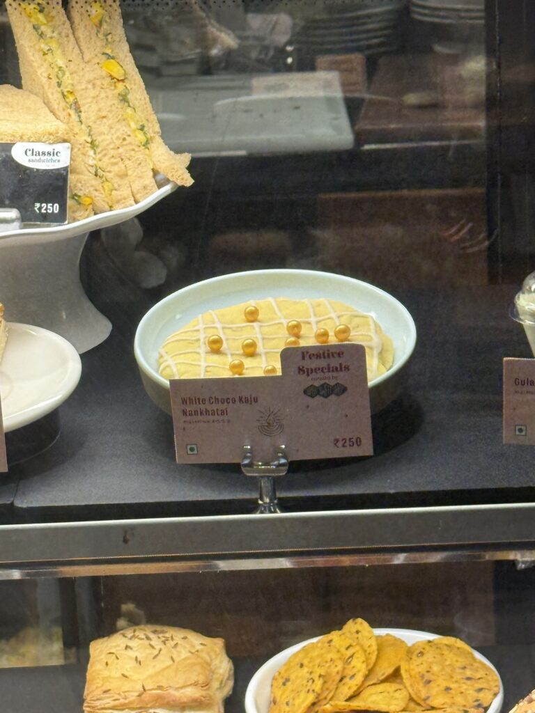 インドっぽい見た目のクッキーがあったので、それとコーヒーで500ルピー。