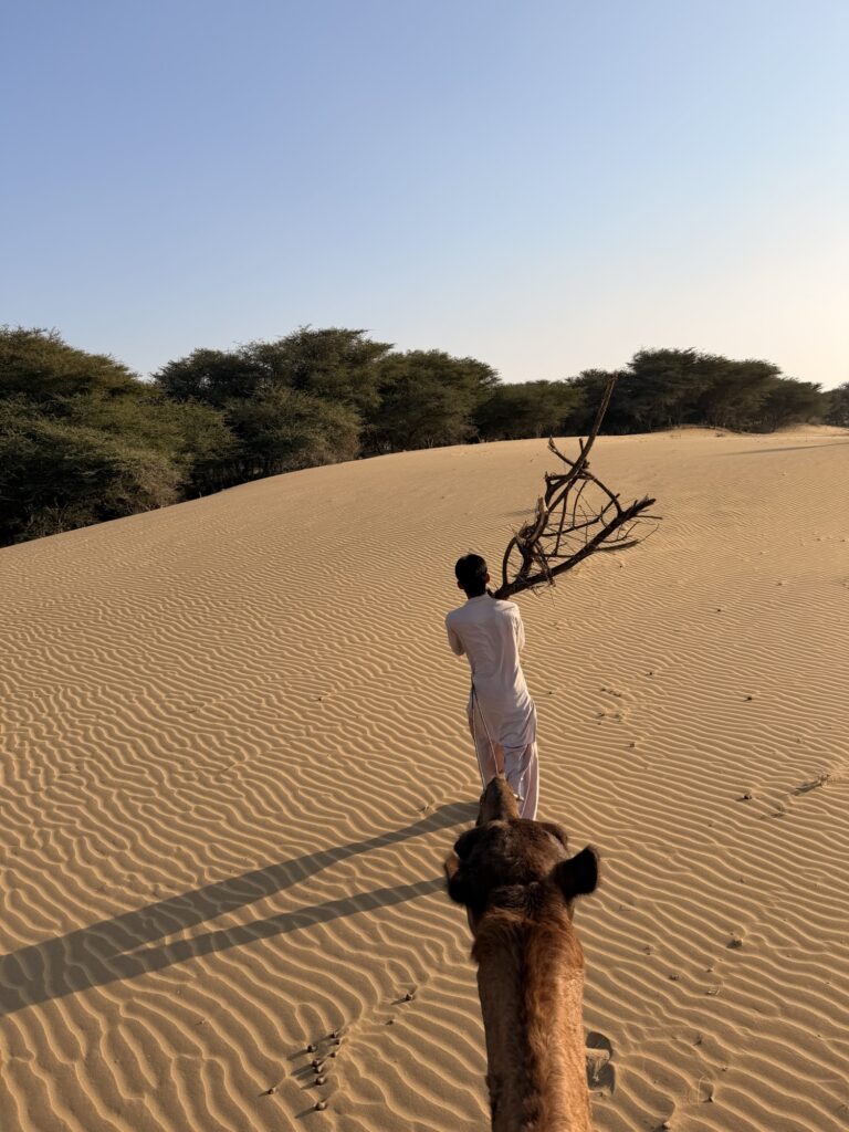 砂漠の入り口からはラクダでキャンプ場まで移動です。(ガイド一人は車で移動🚙)
