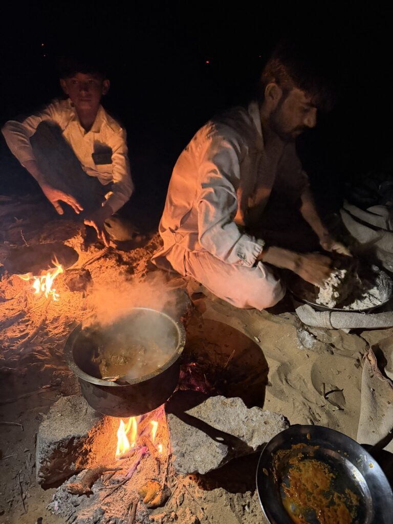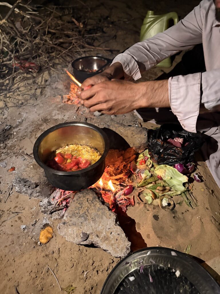ガイドさんとラクダ使いニキが火をおこしたり、ごはんの準備をする中