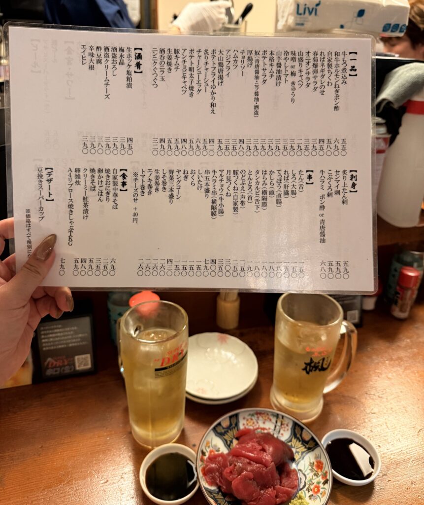 メニューはこんな感じ!錦糸町では安め~相場かな、というところ。