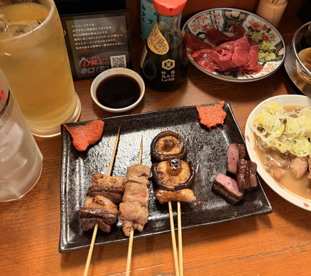 また、ちれ(脾臓)を初めて聞いたので頼んでみましたが、ぶよぶよと臭みのあるレバーのような部分が交互に刺さった串で、ぶよぶよ苦手民なわたしたちはどちらも苦手な味でした😇