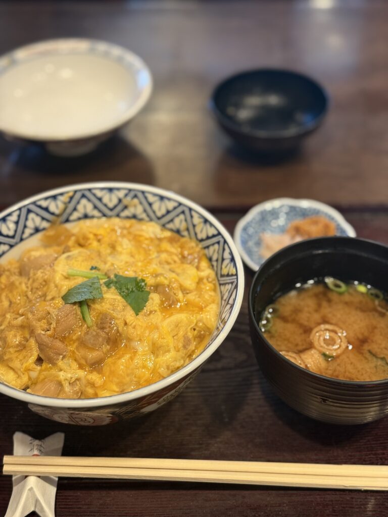 ちょうどいいのでお昼に。名物と迷って好物の親子丼をチョイス🐤💛