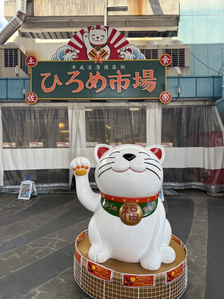 観光を終えたあとは、徒歩ですぐの ひろめ市場へ。