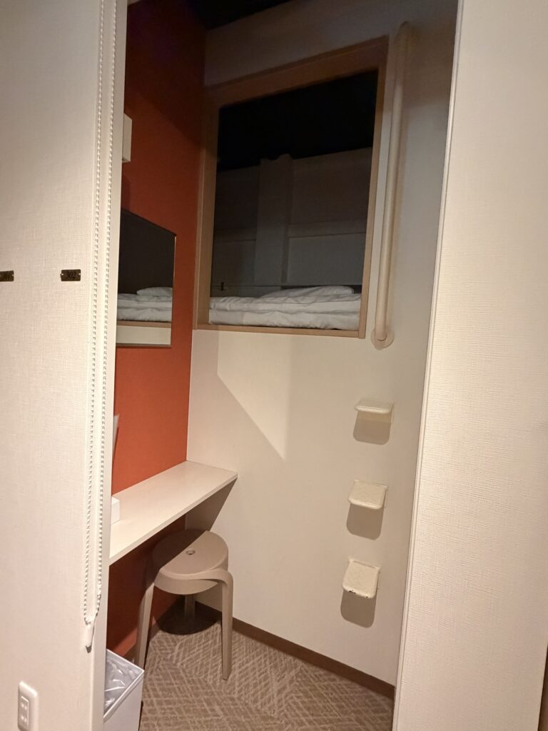 わたしは上段だけのカプセルだったので、専用の幅狭デスクがついていて