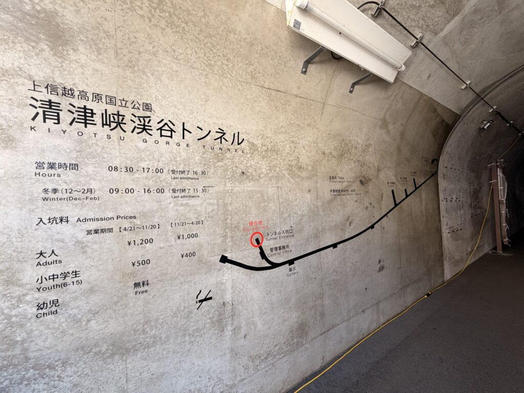 駐車場は無料で、冬期オフシーズンの入坑料は大人1,000円。