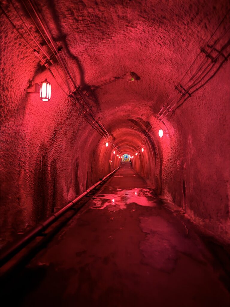「けっこう長いな…?」と思うくらいトンネルは続き、静寂&怪しい色のライトがちょっと不気味なところも(笑)