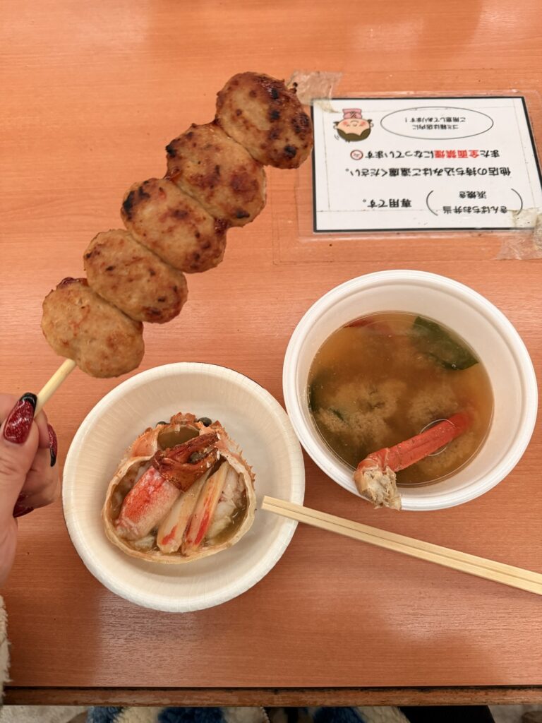 わたしは蟹汁、ズワイの甲羅焼き、エビつくねの3つを注文して、合計2,100円。