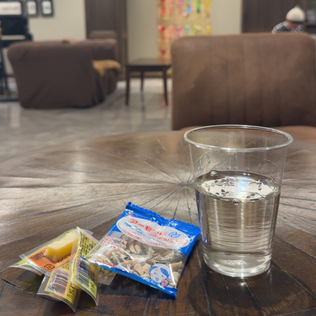 岡山のホテル(アベストグランデ)にてウェルカムドリンクの日本酒を1杯いただいたあと、
