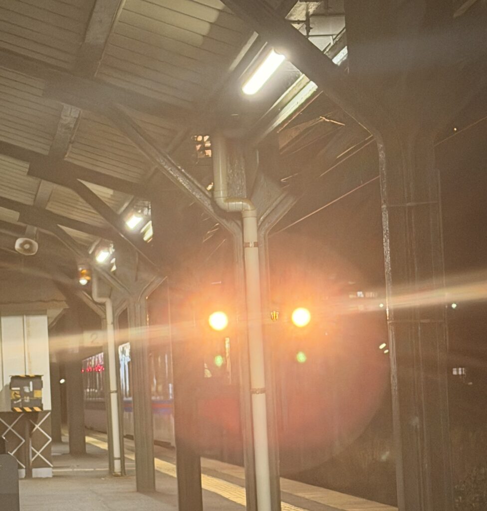 参拝を終えて深夜に荷物を取りに戻ると、駅が施錠されていて中に入れない(笑)