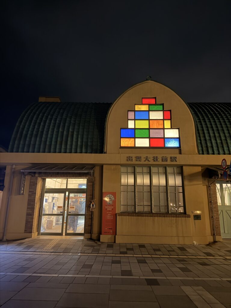 玉造温泉駅 → 出雲市駅(JR)→ 一畑電車に乗り換えて出雲大社前駅という流れ。