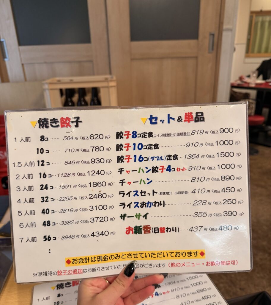飲み物など餃子以外は追加オーダーできるので、ハイボールをお代わりして1人2,600円ぐらいでした😊!ちなみに現金のみです!