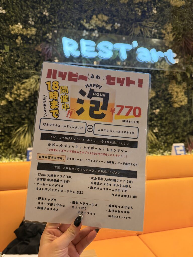 続いてはこちら、ハッピーアワーの看板を見つけたイタリアンのお店です。「レスタート」って読むみたいです✨ ➡食べログ