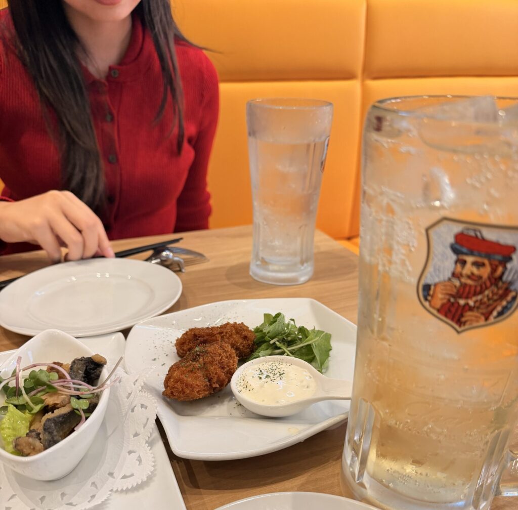おつまみは牡蠣フライと、本日のおつまみ「さんまのから揚げ」を選びました🎶