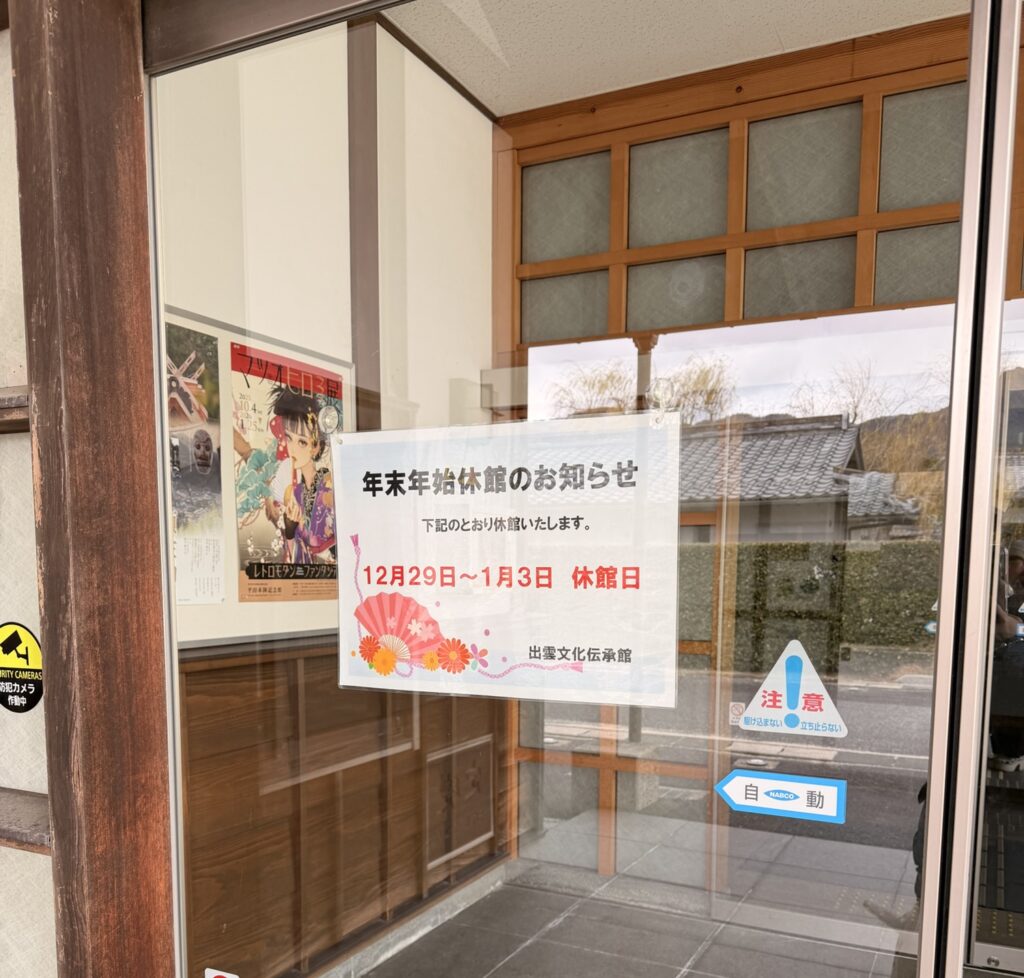 出雲文化伝承館に1時間弱かけて歩いて行ってみましたが、なんと休館( ;∀;)