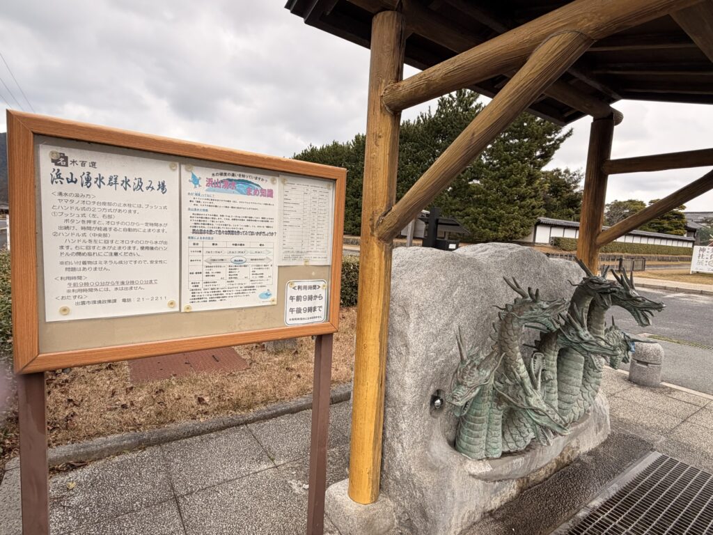 駐車場内にあった「平成の名水百選浜山湧水群」の水をちょっと飲んでから、